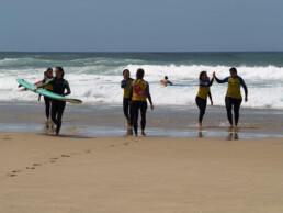 “O baptismo de yoga ao ar livre (já era praticante de yoga “indoor”) deu para ficar cheia de energia positiva e de confiança para o baptismo seguinte que era bem mais desafiante. Mergulhei de cabeça no mar e as ondas trouxeram-me de volta à praia. Senti-me uma criança a fazer carrerinhas. Muito me ri eu em cima daquela prancha. Ainda hoje, fecho os olhos e consigo sentir aquela sensação de deslizar pela água. Tão bom!”